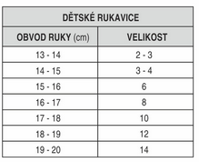 Velikostní tabulka dětských rukavic R2: