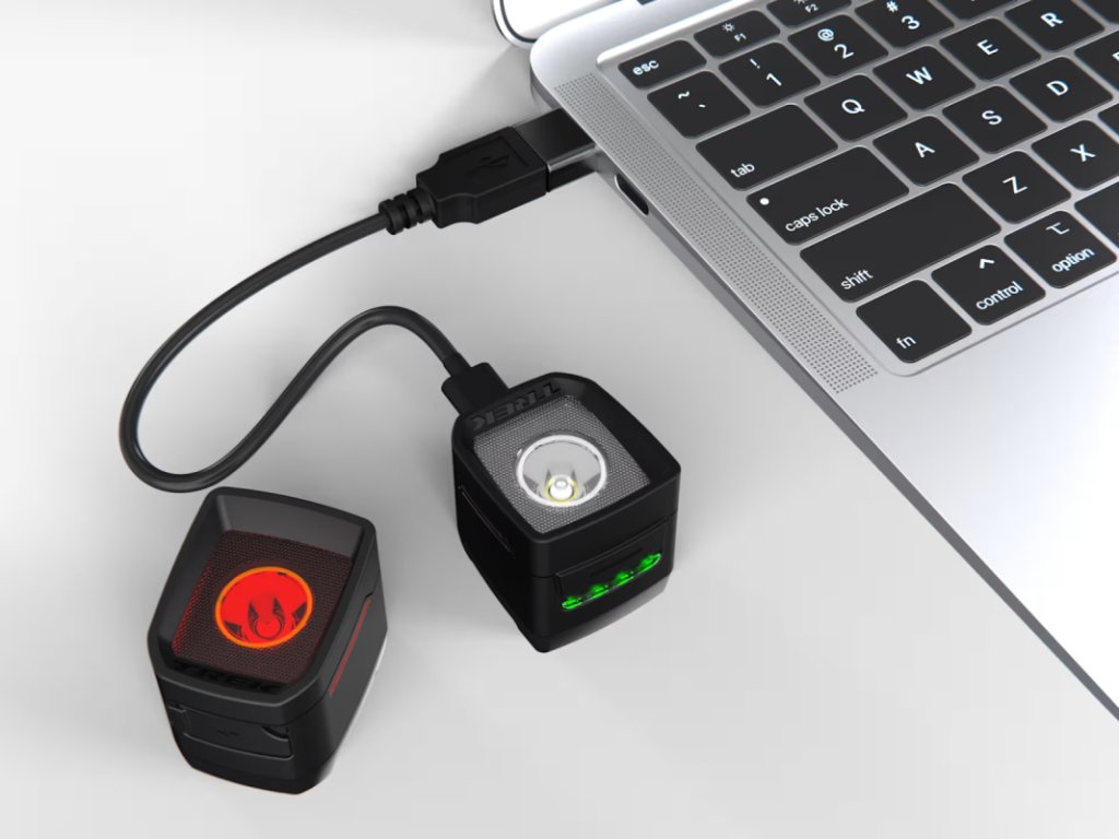 - Sada zahrnuje světla Ion 100 R a Flare R City, dva úchyty Quick Connect a dobíjecí kabel USB-C.